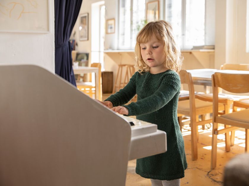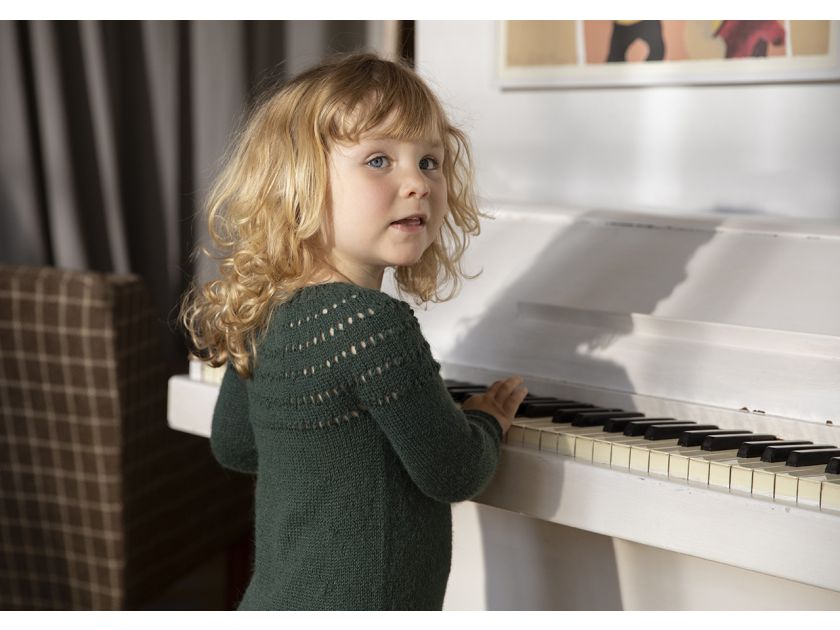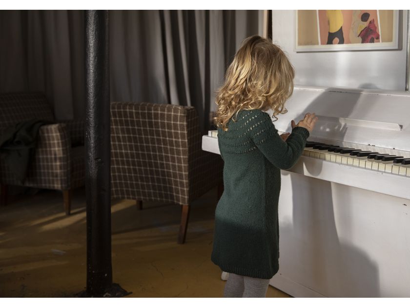 Amaliehaven is a new interpretation of our very popular design Kastellet. An adorable design knitted in cosy alpacca. A cute winter dress, or maybe even an adorable Christmas outfit.