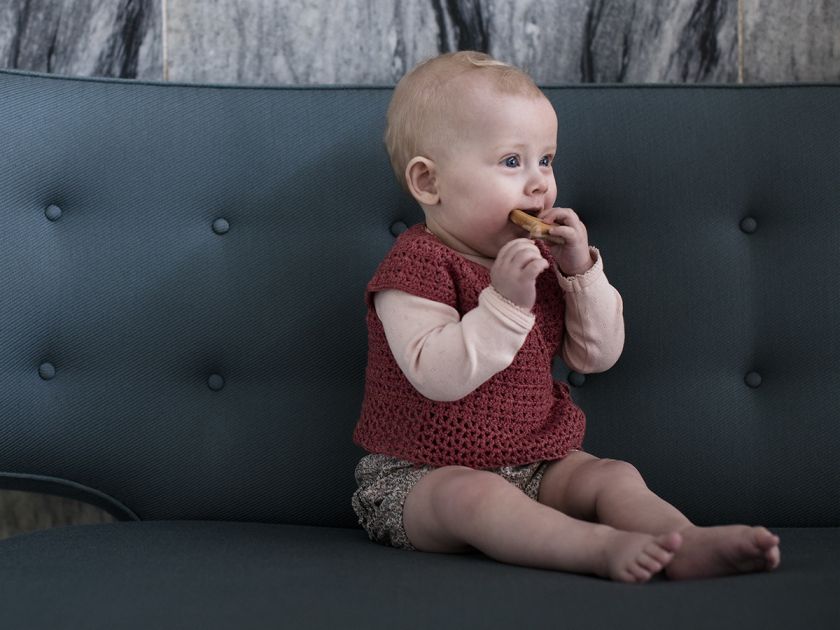The sweetest vintage inspired crochet design for babies created by designer Sidsel Sangild. Doris is a lovely little baby top with overlapping fronts in a gorgeous crocheted pattern.