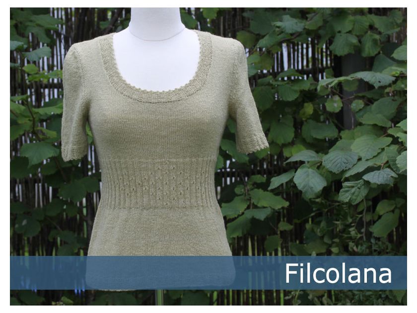 A short sleeved blouse knitted in Saga.