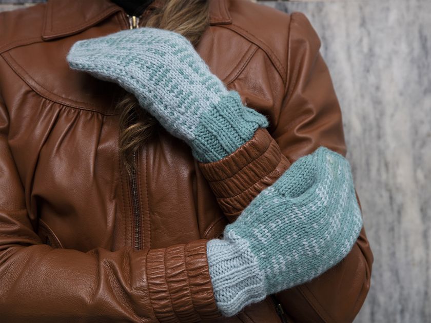The designer describes how he gets annoyed that he sometimes mixes up his right and left mitten, when hurrying out the door. He has solved this problem by reversing the colours on the right and left mittens. Cleverly this also means you only need one skein of yarn in each colour – while making yourself a very stylish pair of mittens.a