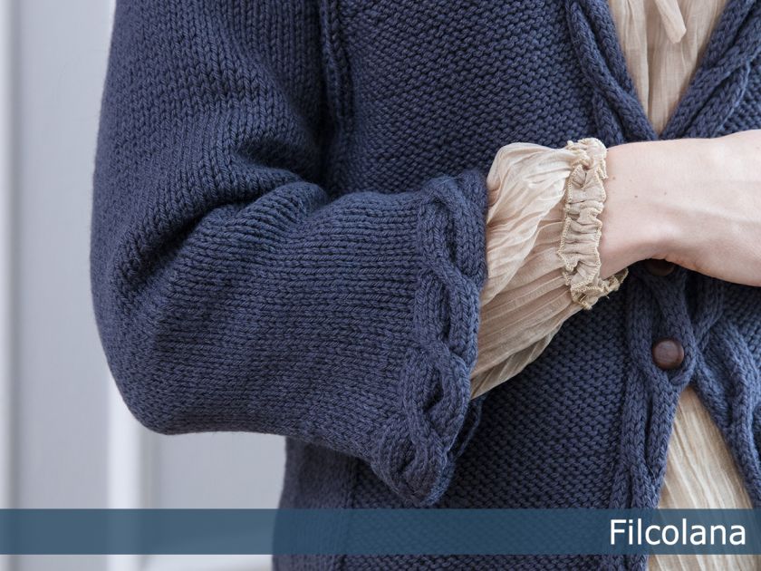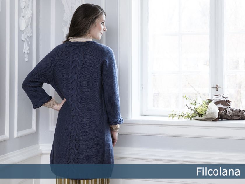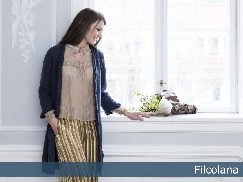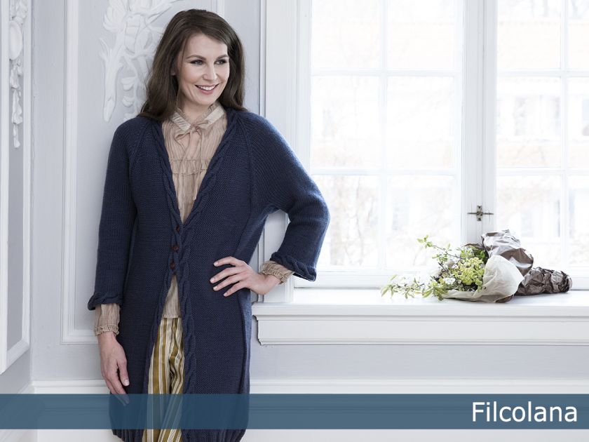 Leonora is a long loosely fitting cardigan inspired by the Skagen painters’ beautiful paintings of the Nordic light over the coastline, with the dark sea below and the tattered clouds above. The cables lift from a sea of purl stitches as the clouds above the sea. ”Leonora” is part of Filcolana’s ”Colours of the Scandinavian Summer” collection. For this collection our team of designers have found inspiration in the incredible Scandinavian light and colours in the works of the Skagen Painters.