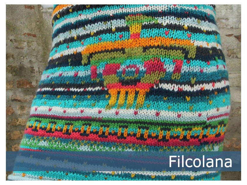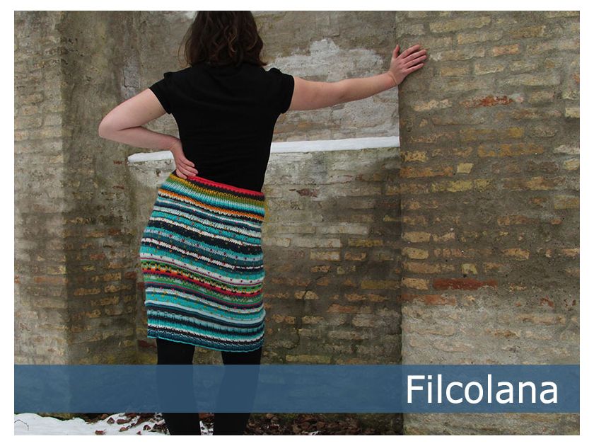 Knitted skirt with colourdetails.