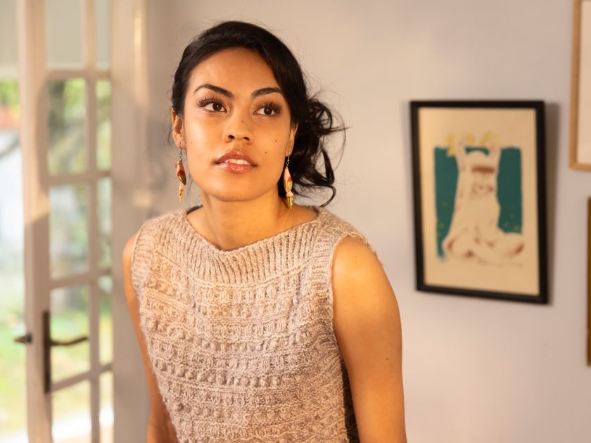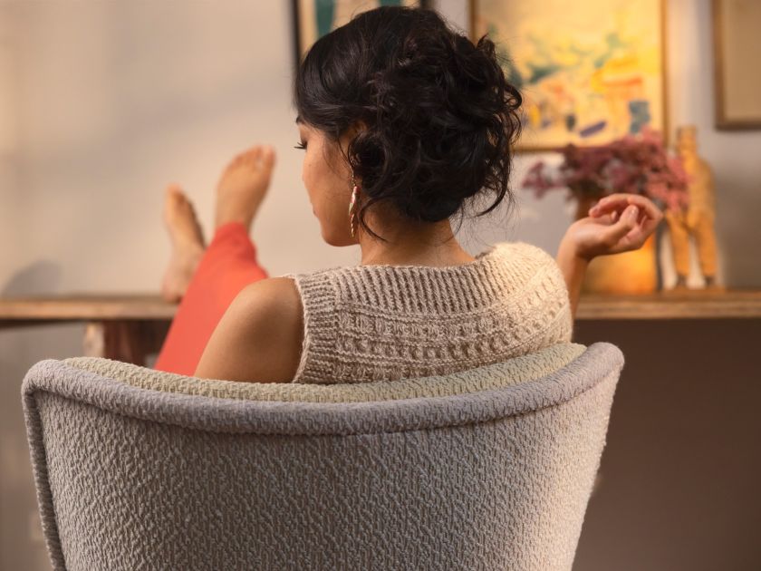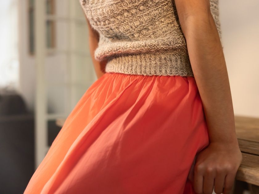 Sanibel has a tight fit and is reversible. One can choose to wear it, so the V-shaped opening is on the back and the square opening is on the front.