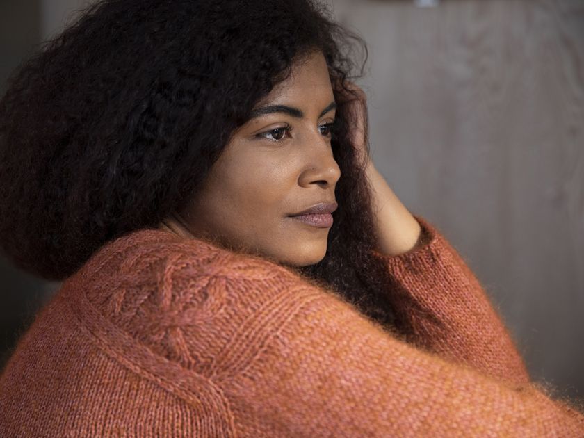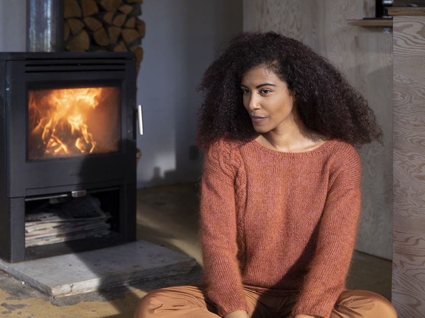 A lovely soft and light cabled sweater. The sweater has a beautiful cable placed assymetrically down one side, as well as an elegantly constructed shoulder seam. A simple sweater with an interesting construction.